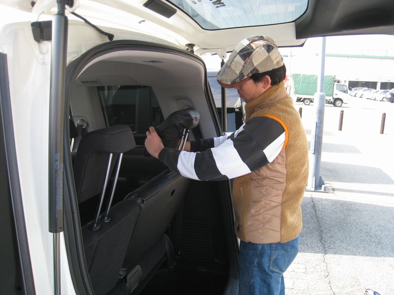 mugenさんは3rdシート部分のお手伝い。 一番楽チンな箇所を敢えて選択して手伝っているフリをしているのかと思えば、この3列目の作業がが大変なんだ、といろいろ説明を受けました。