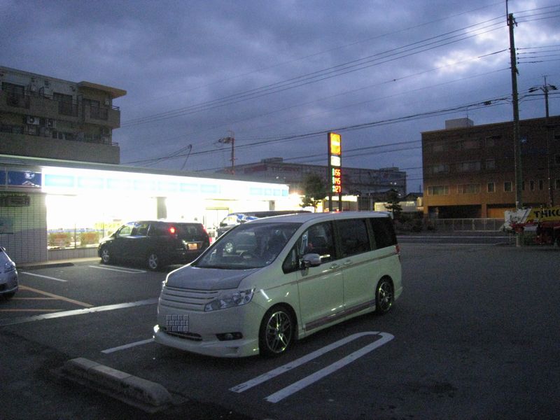 事前の申し合わせ(?)で関西組は、「草津SA」に一旦集合しAM7:00に変態走行で次の合流地点である「御在所SA」を目指すことになってました。 私はAM 6:00ちょっと前に女房と共に自宅出発! 高速に乗る前に早々にコンビニで休憩〜ぃ(^^;。 まだ暗いですネ。 |