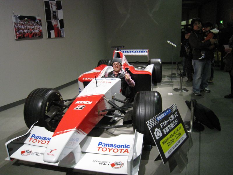 F-1に乗せてもらってご機嫌な私(^^)。 メッチャ運転しにくい・・と言うか、乗り込むのも大変でした(爆)。 | |