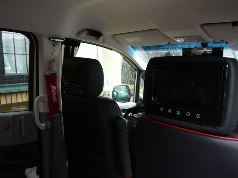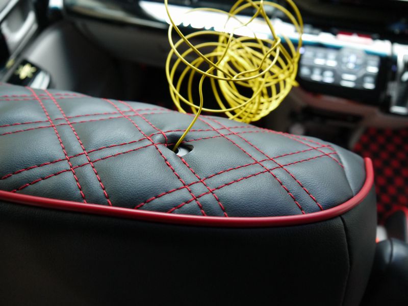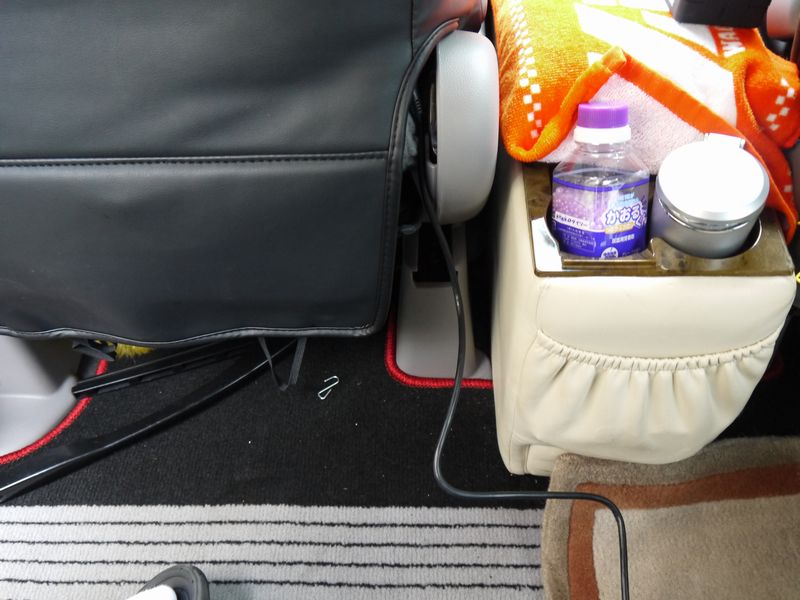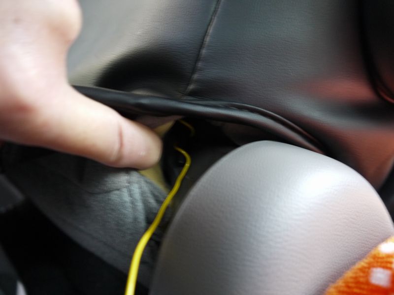 まずはヘッドレストを外して購入した品物に交換。ここでは配線を筒の中に潜らせるのがやや難儀です。 私の場合、針金を上から通して、ケーブルが通る「道」を確認しました。
