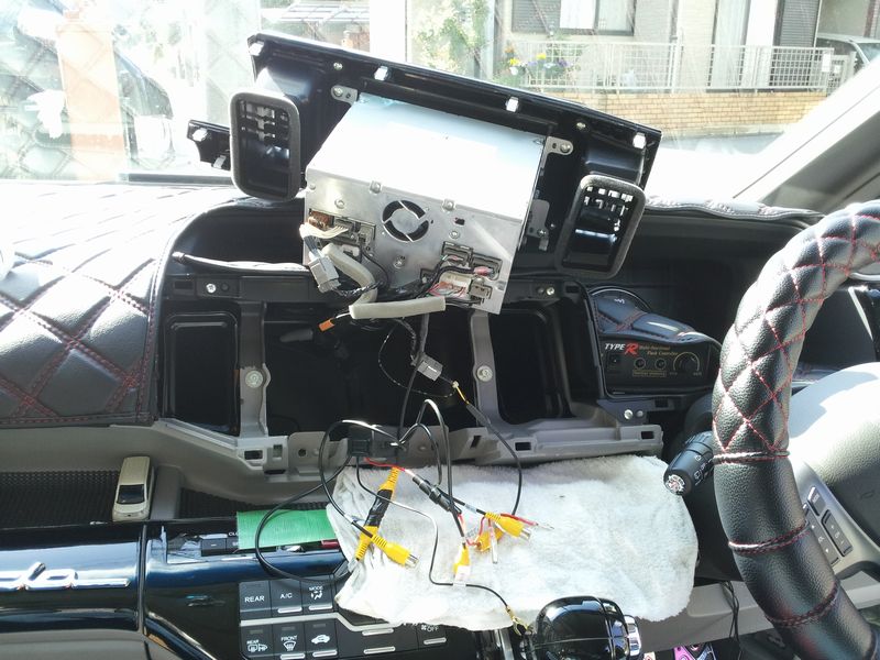 でわ、早速、ステップワゴンRKへの取付作業の様子です。