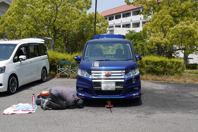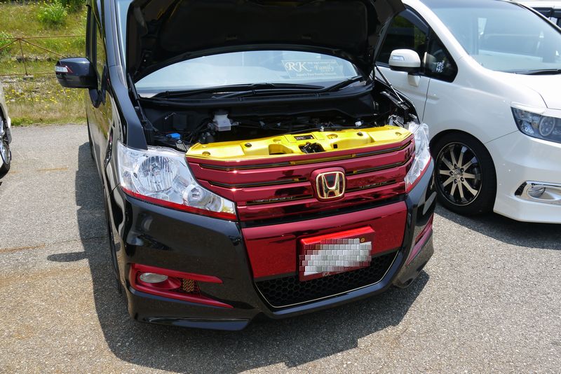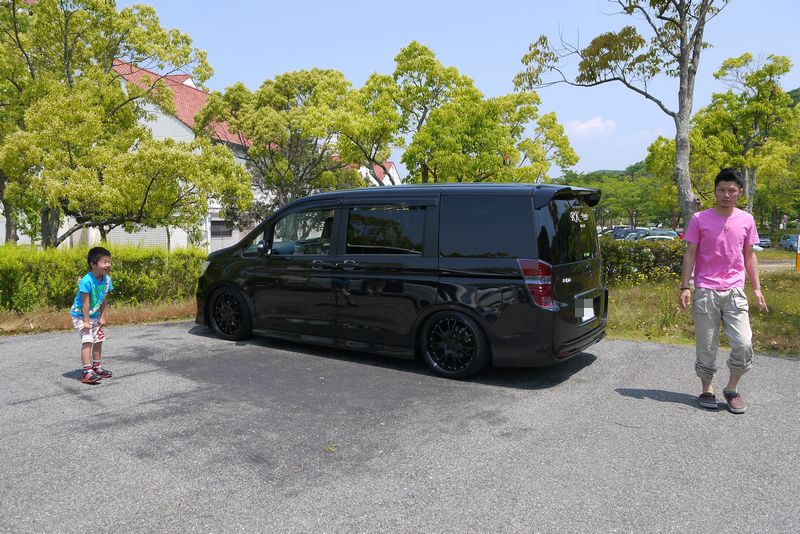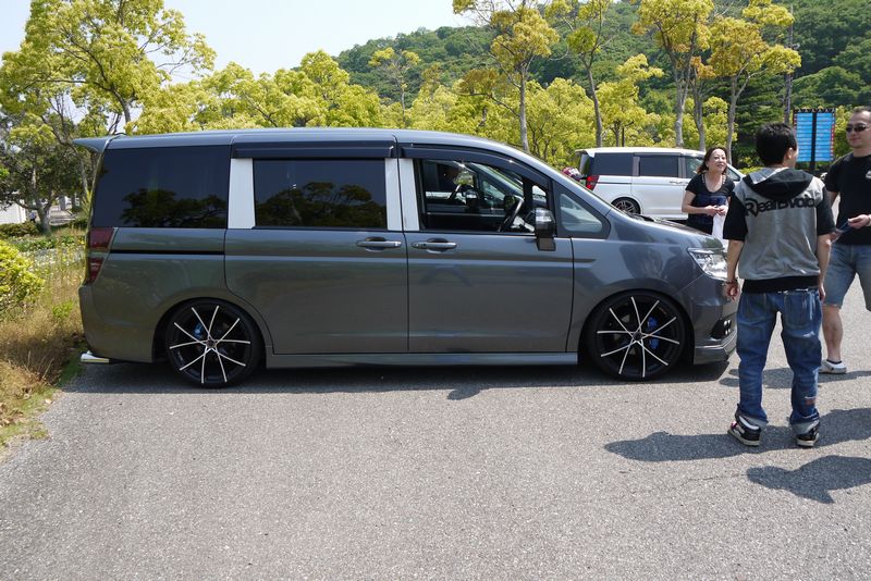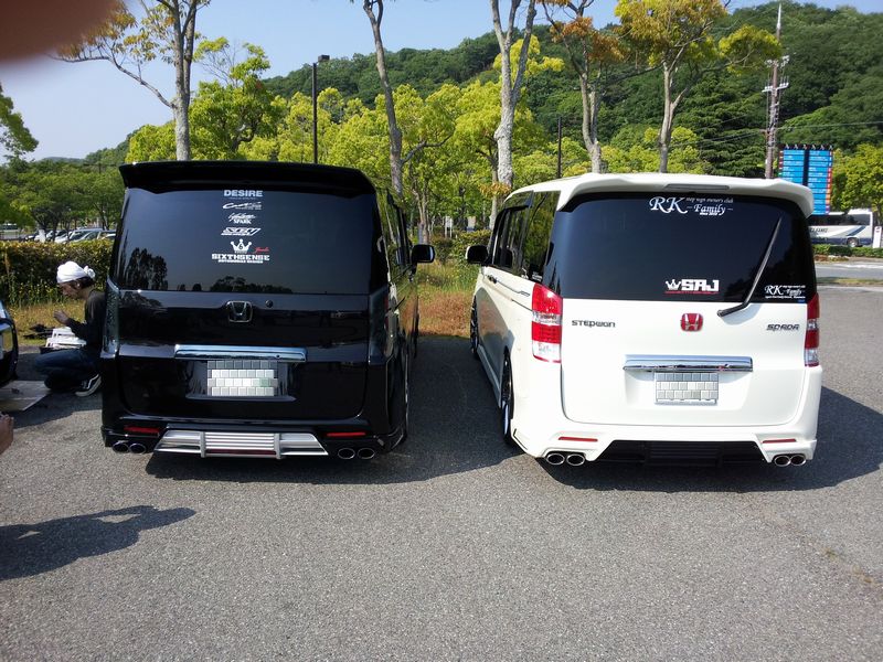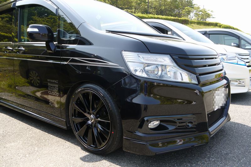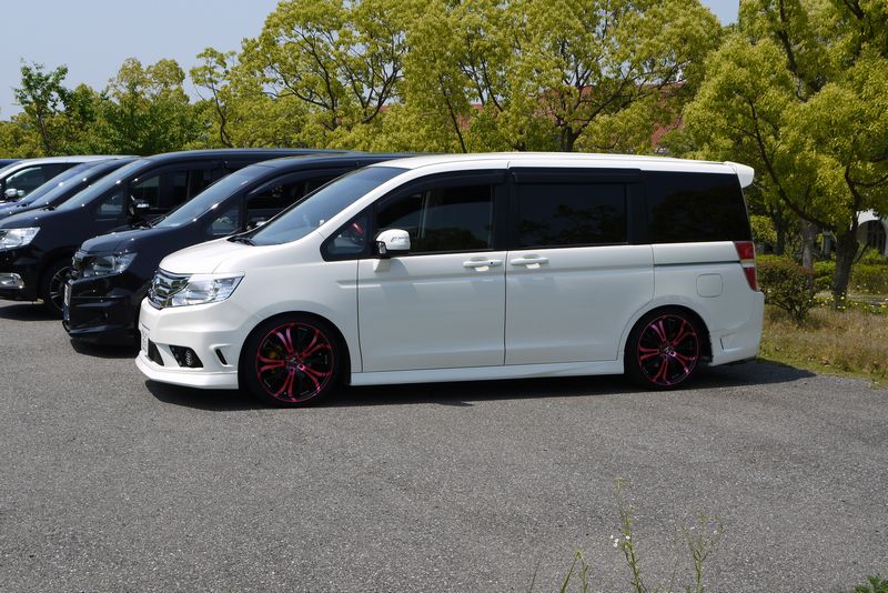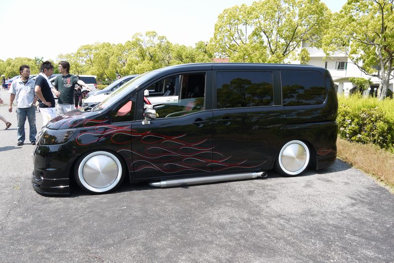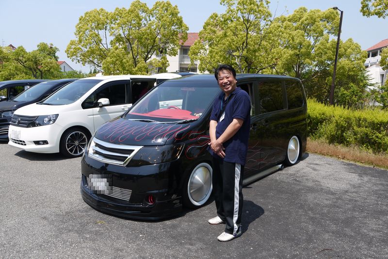 何やら聞きなれない爆音を響かせて登場したステップワゴンが・・・と思えば、よく見ればRemigtonさんのC25セレナ。 ファイヤーじゃなくフレアパターンのペイントとサイドのマフリャ〜が鮮やかなアメリカン仕様です。