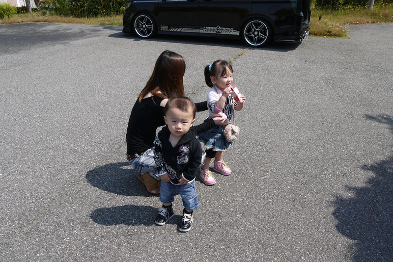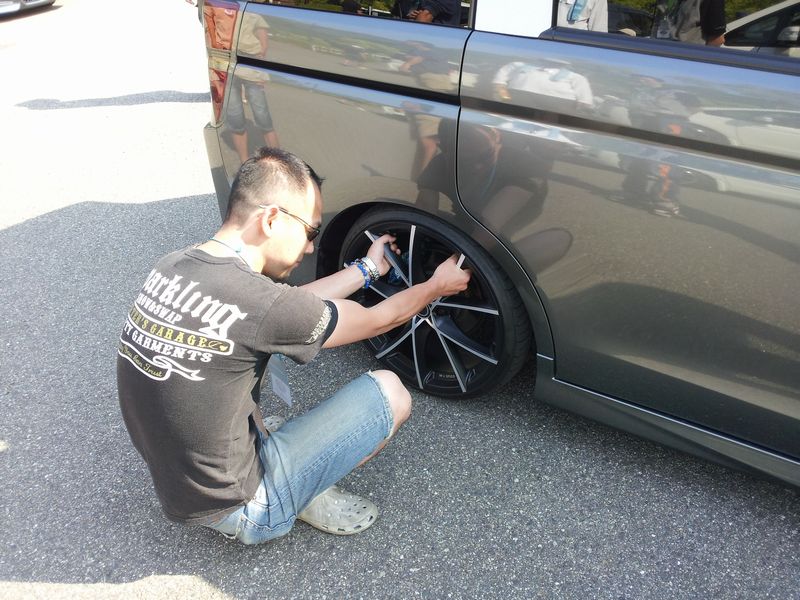 ますます真っ黒なホイールを新調して登場でした。 こりゃ、夜に見たら何も判別できないな(^^;