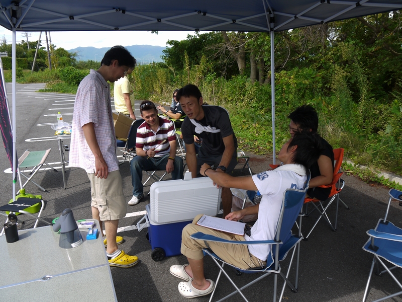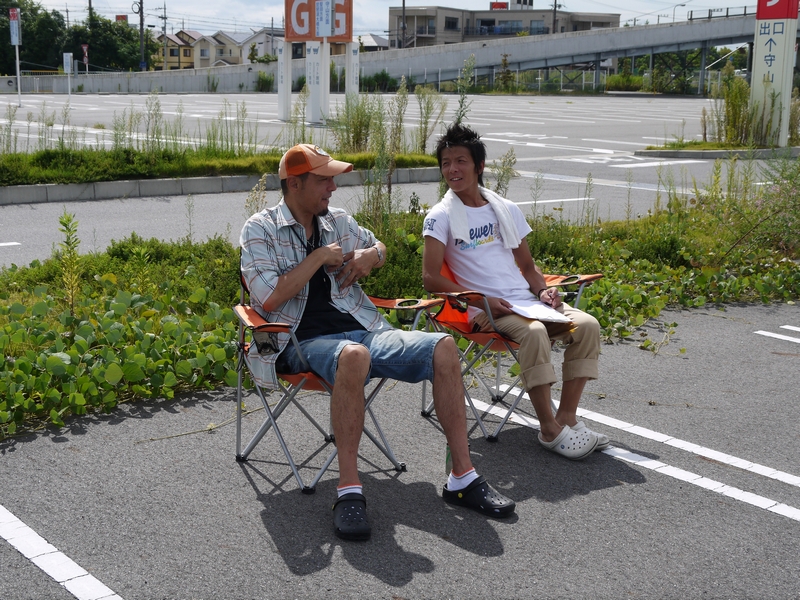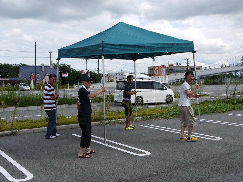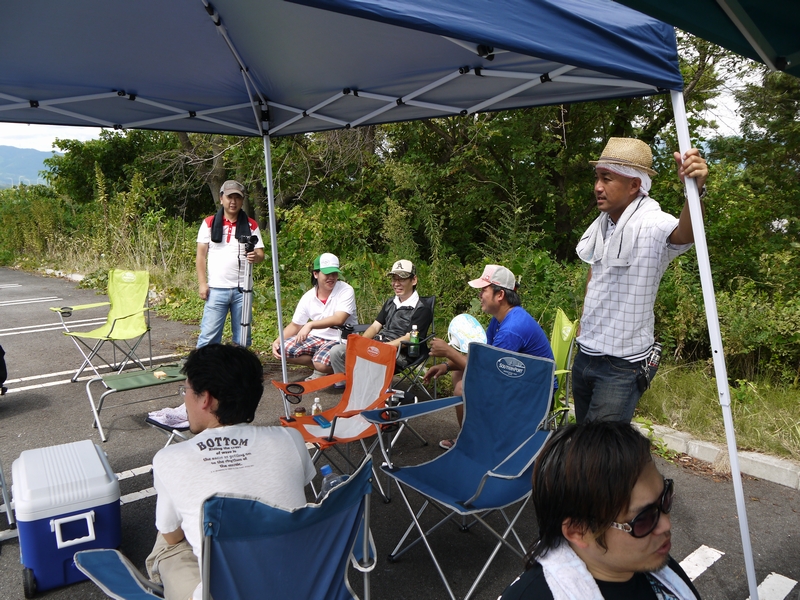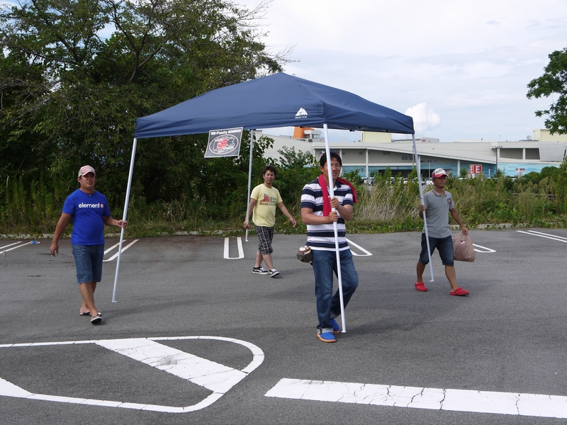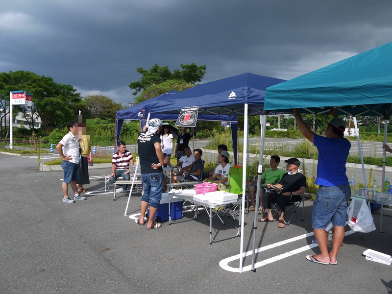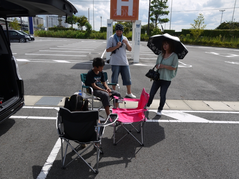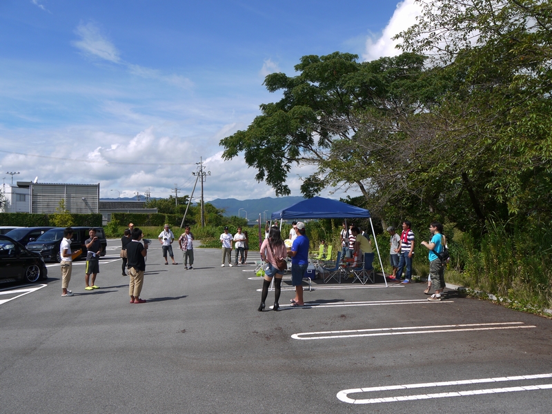 会場は歩パパさんの配慮で貸切にはなってましたが、かなりの快晴とアスファルトの駐車場だけに暑さも半端ない状況でした。
