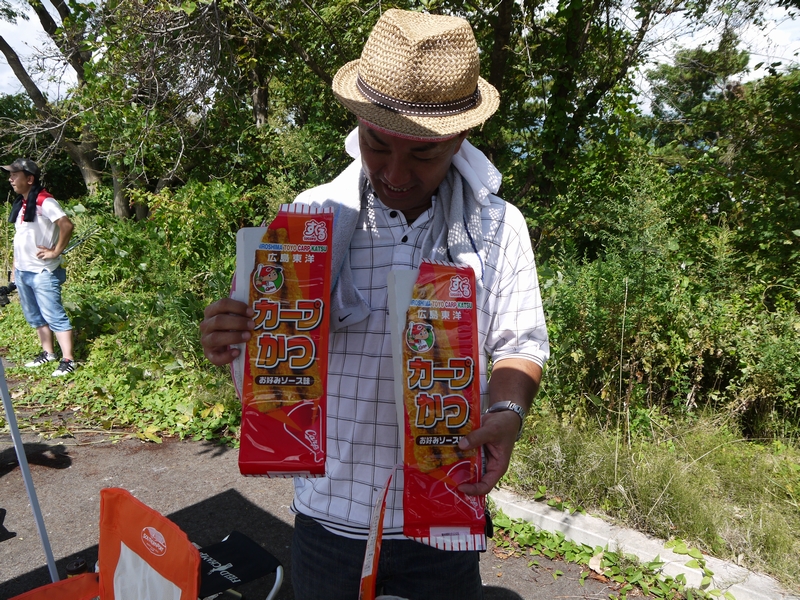 広島と言えばカープかつ、もみじ饅頭を携えての登場でした。