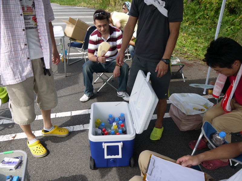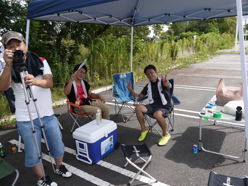 今までタープを立てて、「大会管理本部兼お菓子配布場所」としていたコーナーは、風通しが悪いことに今頃になってやっと気付いた面々。