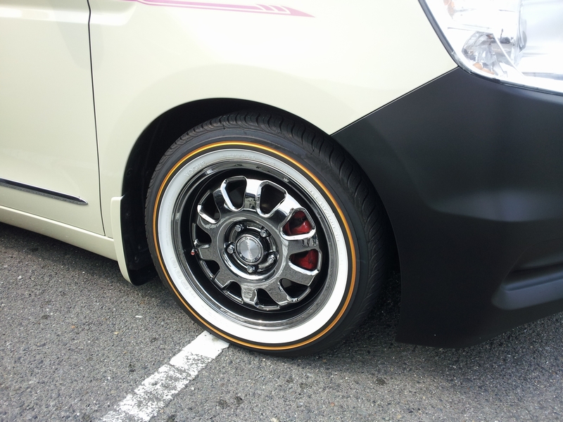 なんと言っても目を引くのは、ホワイトリボンな足回り。