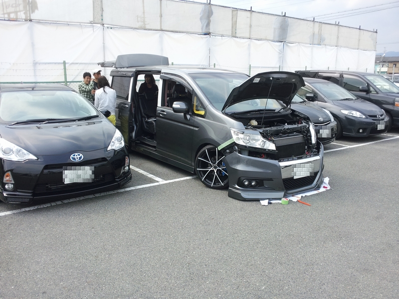 早速、よっさんスパーダさん号がリアガーニッシュの交換をするという事で作業のお手伝いぃ〜。(^^;